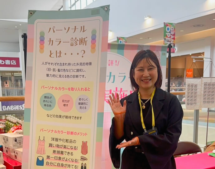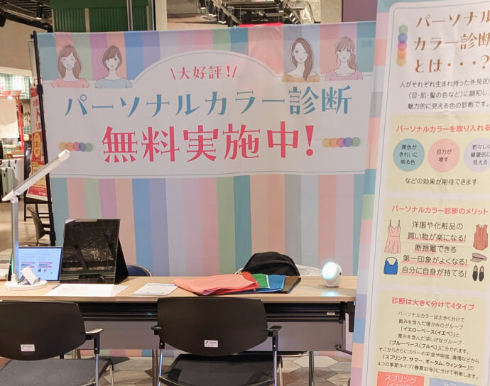 お買い物のついでにふらっと立ち寄れるので、「パーソナルカラー診断って気になってたけど、どこで受けたらいいかわからなかった」という方にぴったりのイベントなんです♪
