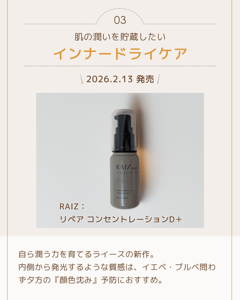 表面は気にならないのに、内側が乾く/うるおいが続かないタイプは、土台の方向性が「持続」に寄ります。