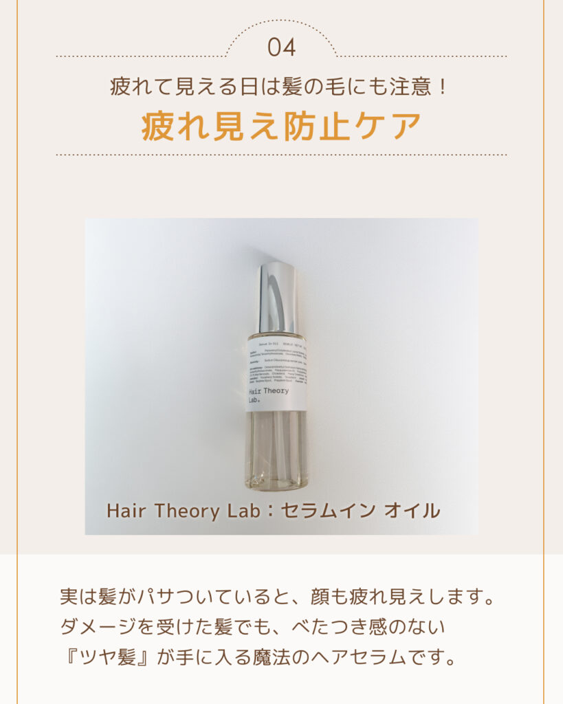 疲れて見える日は、肌だけでなく 髪の質感 も要注意です。